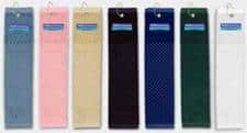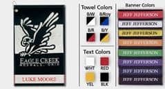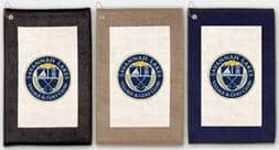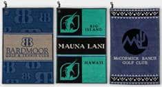 Golf towels can be embroidered, Image-DyedTM with your logo or photograph. Your logo can even be custom woven into a fine jacquard towel. We do not screen print on terry towels because we feel other imprint methods are far more durable. Golf towels are available with or without grommets, hooks, and various other types of towel holders. Cordova & Associates also offers a selection of golf chamois and microfiber towels.